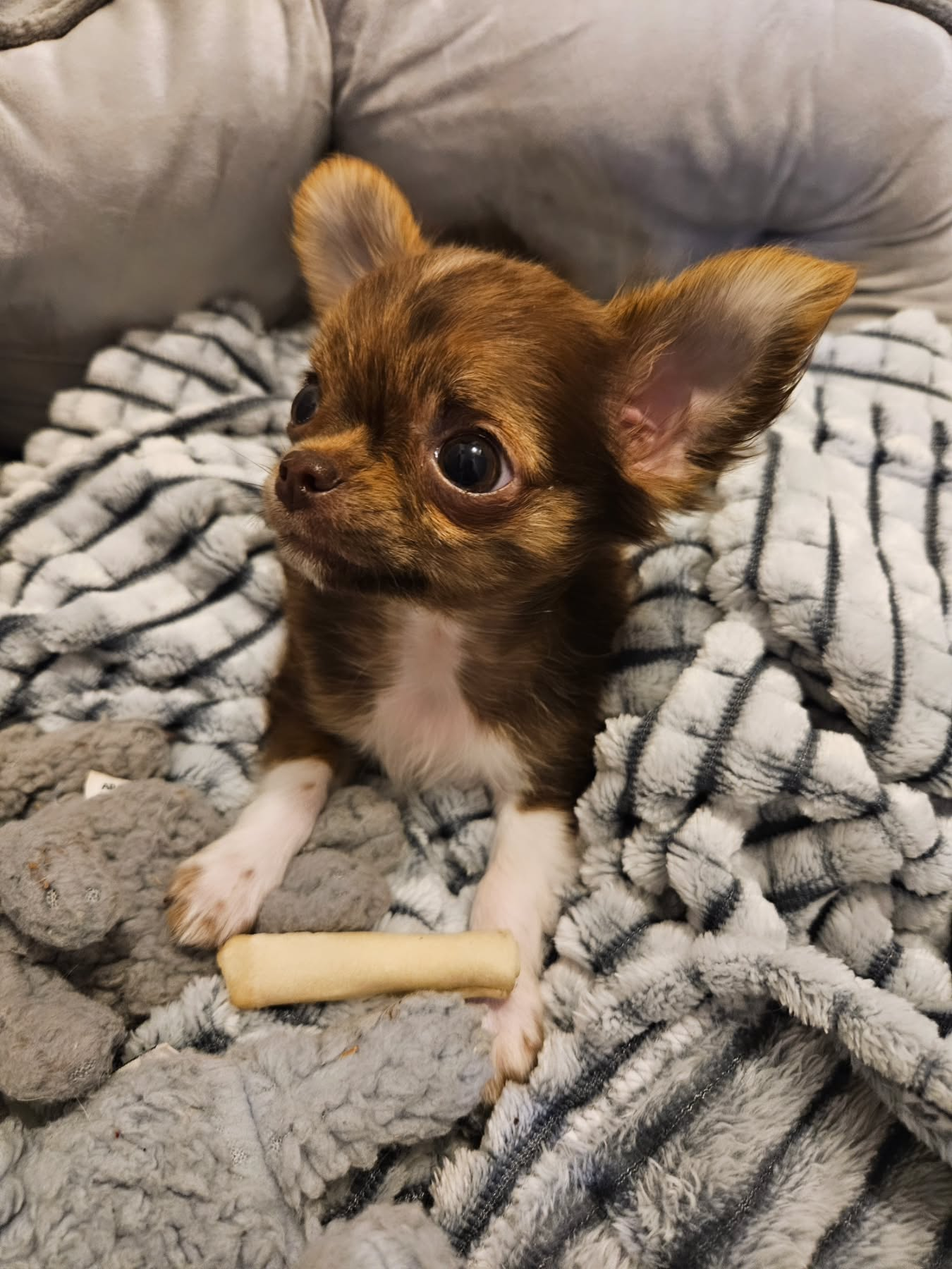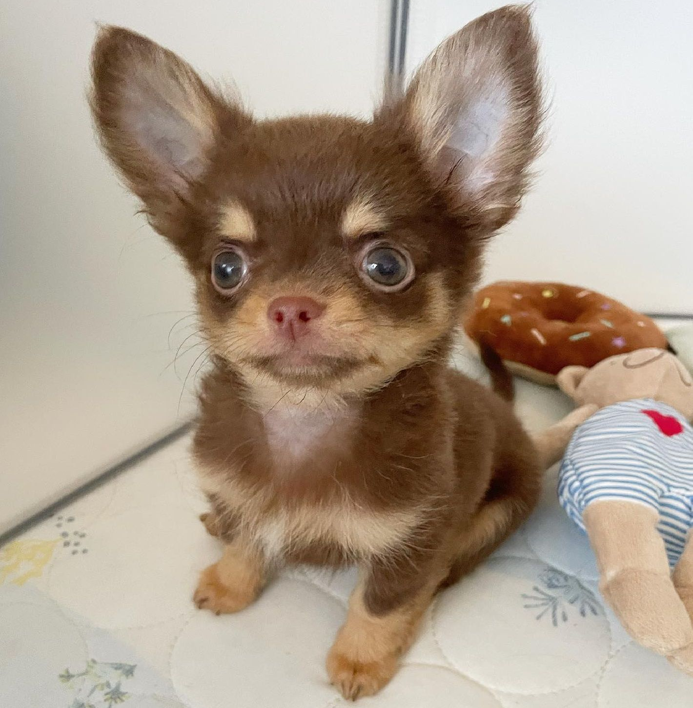 Adorable chocolate teddy bear with big sparkling eyes, huge expressive ears, and a sweet white chest. This tiny, loving boy is full of personality and ready to give endless cuddles and affection. The perfect small companion!